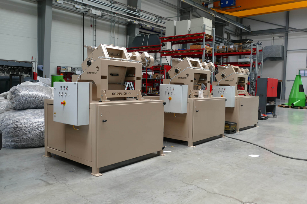 El material se alimenta continuamente a su unidad de producción a través de tubos de descarga. Se aplasta entre las cuchillas del estator y del rotor. El tamaño de la pieza depende del tamaño de la pantalla instalada. El material se descarga en caída libre hacia abajo en contenedores de virutas in situ.
