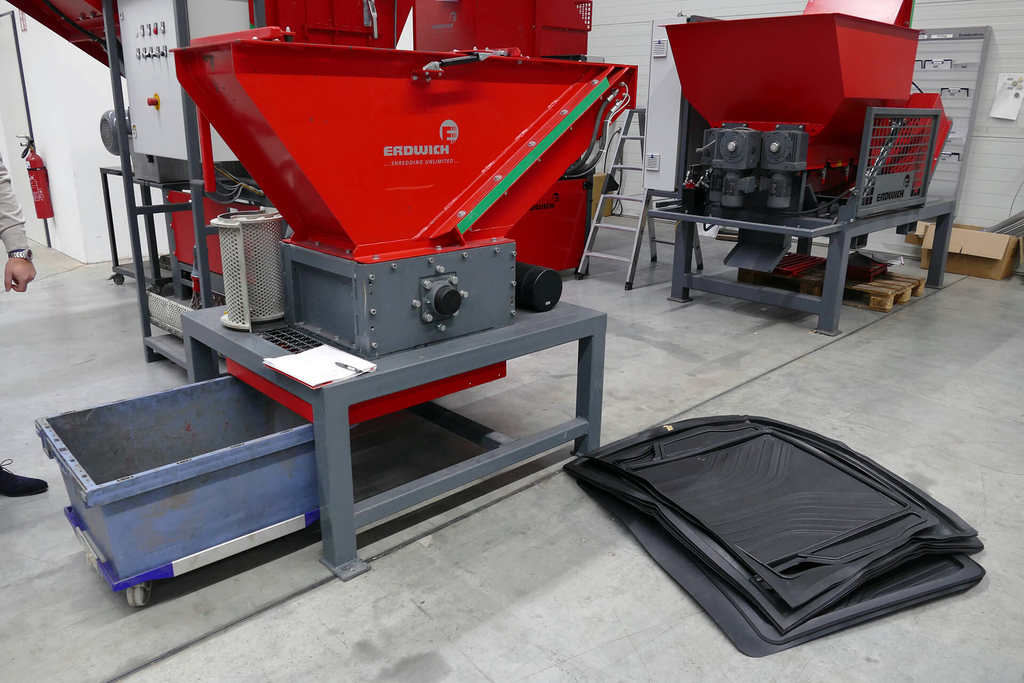 Las alfombrillas deben triturarse previamente para poder ser procesadas posteriormente en un proceso de granulación.