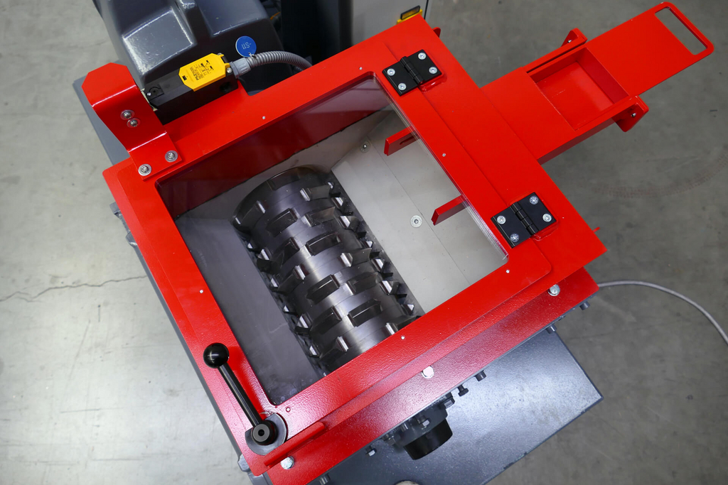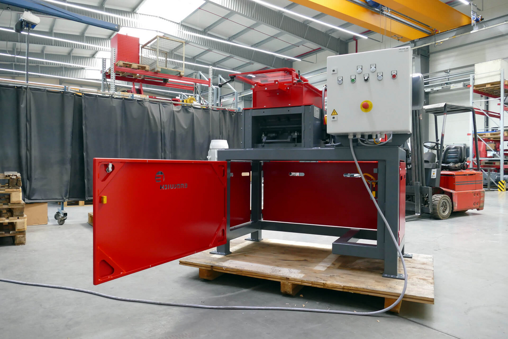 En este encargo, nuestra trituradora monoeje M600/1-400 se utiliza para el triturado de discos de datos desmantelados de discos duros. Los soportes de datos se trituran mecánicamente y los datos confidenciales se destruyen de forma efectiva e irreversible. La tarea se realiza manualmente. El sistema de cajones permite introducir los cristales de forma sencilla y segura.